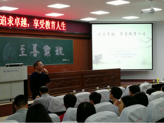 张校长从中等,乃人生常态;教育的生命在于生命的教育;追求卓越,享受教育人生这三个方面讲述了他怎样过好教育人生。语重心长的和同学们分享他从事教育事业的感情鼓励学院物理师范生从事教育事业,要发至内心的热爱这份事业,热爱学生尽管教师这个职业很普通,但是可以做到卓越,职业人生将会比普通人获得多的快乐让生命更有意义。