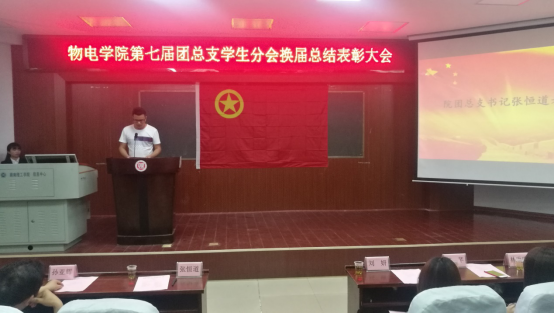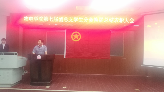 2017年6月19日晚上7点,物电学院在6栋学术报告厅举行了第七届团总支学生分会换届总结表彰大会。物电学院党总支副书记孙亚辉、团总支书记张恒道、物理专业学生党支部书记何小娅、第七届团学分会全体干部干事和2016级全体同学参加了本次会议。