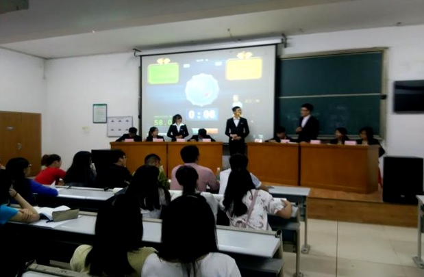 6月9日晚7:30,物电学院与机械学院主题为“年轻人选择大城床还是小城房”的友谊辩论赛于7T1隆重举行。物电学院辩论队队长张骏、中文学院辩论队队长闫伟光以及美术、政法、机械学院辩论队队长出席活动。