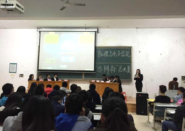 11月22日晚,物电学院第十二届“思辩杯”辩论赛决赛在7T2教室隆重举行,针对“环境保护以人为本还是以自然保护为本”,正方物电学院物理15-1BS对阵反方物电学院光电15-1BF展开辩论。邀请了经管学院李汶燕、政法学院万嘉宾、土建学院王康、美术学院白政、经管学院岳馨妍、物电学院罗价玉6位实力辩手担任评委。物电学院第六届团学分会委员出席了活动。