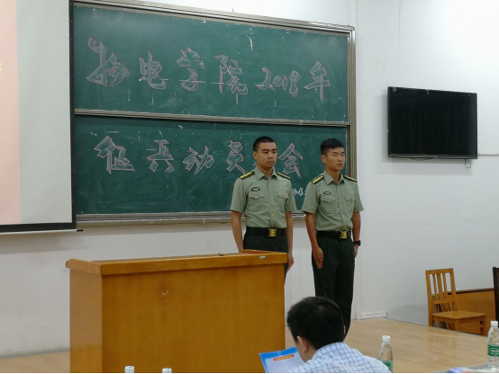 6月12日和13日,物电学院9T2针对物电学院全体男生举行了征兵宣讲动员会,物电学院院长李宏民,党总支书记罗文华,副书记孙亚辉,辅导员何小娅武装部第三宣讲团的全体同志会议征兵专干张恒道老师主持