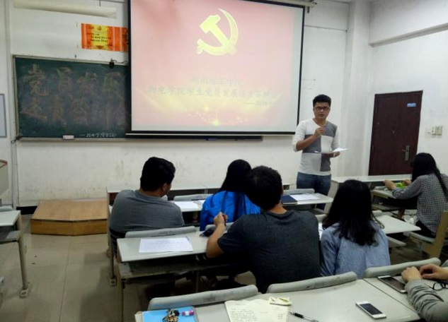 4月15日晚7点,物电学院发展学生党员述责答辩活动在6110、6111、6112教室举行。物理学专业学生党支部书记盛汝琼同学,光电专业学生党支部书记陈煜同学,电子专业学生党支部书记张海玲同学和各支部支委组成了答辩委员会,组织员何小娅、张恒道老师参加了活动。