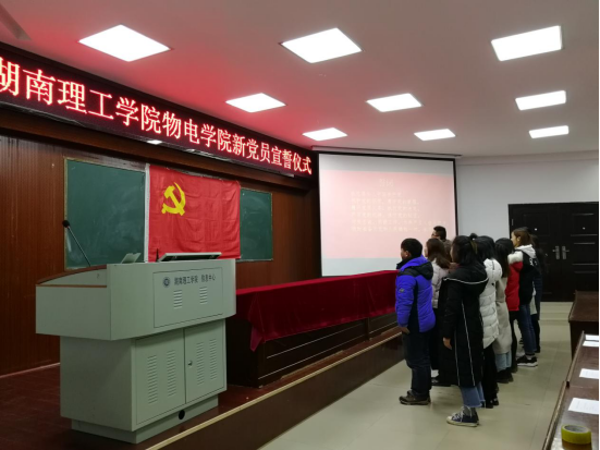 2018年1月12日下午,物电学院2017年下半年新发展党员宣誓仪式在物电楼学术报告厅举行。出席本次会议的有院党总支书记罗文华同志、物理学专业学生党支部书记何小娅、电子专业学生党支部书记张恒道、全体新发展党员、16级入党积极分子。