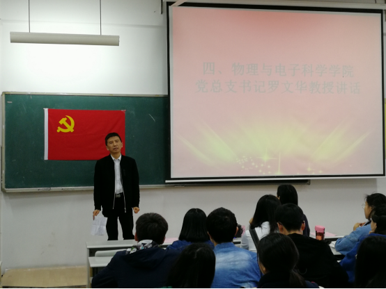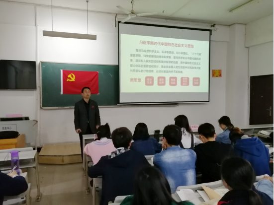 本次党课讲座主要由副校长张国云、总支书记罗文华、总支副书记孙亚辉、学生党支部书记张恒道四位老师依次为同学们讲解十九大精神、党规党章、入党条件以及党员发展程序。