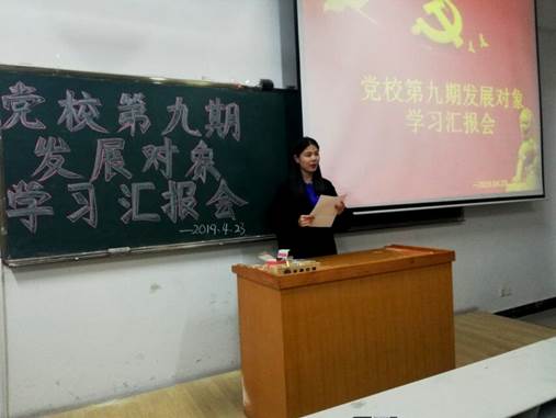 4月23日下午,物电学院在6102举行了党校第九期发展对象学习汇报会。本次会议由物电学院团学组织部部长钟卫成主持,物电学院党校第九期全体发展对象参加了此次会议。