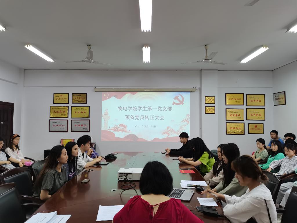 5月25日中午,物电学院学生第一党支部于6205会议室召开预备党员转正大会。物电学院学生第一党支部书记何小娅出席并主持会议,学生第一党支部全体党员参会。