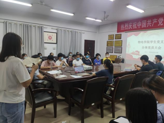 9月18日下午,物电学院全体学生党员纪念“九·一八”事变发生80周年,在 6205会议室召开了习近平总书记“七一”讲话专题学习讨论会。学生第二党支部书记严胡伟老师主持。