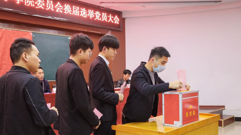 会议上,李科敏宣读了《物理与电子科学学院党委党员大会选举办法》,何小娅宣布第四届委员会委员候选人名单,学院全体有选举权党员通过无记名投票方式选举周畅、李宏民、李科敏、魏勇、罗良、邹志军、李昶等7名同志为新一届党委会委员。