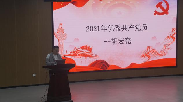 优秀党员代表、国家奖学金获得者左心慧借用影剧《觉醒年代》来向革命先烈们致敬。她将共产党员比作一盏明灯,一盏照亮自己、指引身边人的明灯,并提出:作为青年的我们不应该只活在先辈的余荫下,而应扛起未来的大旗,在学习道路上下真功夫、苦功夫、辛功夫,不忘初心,牢记使命。