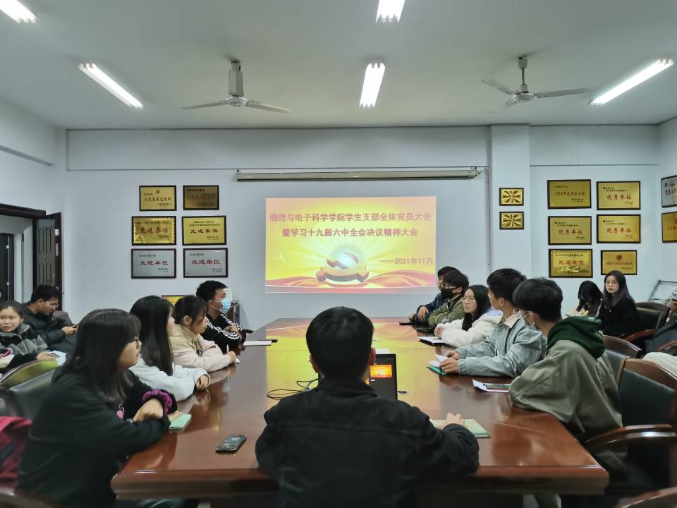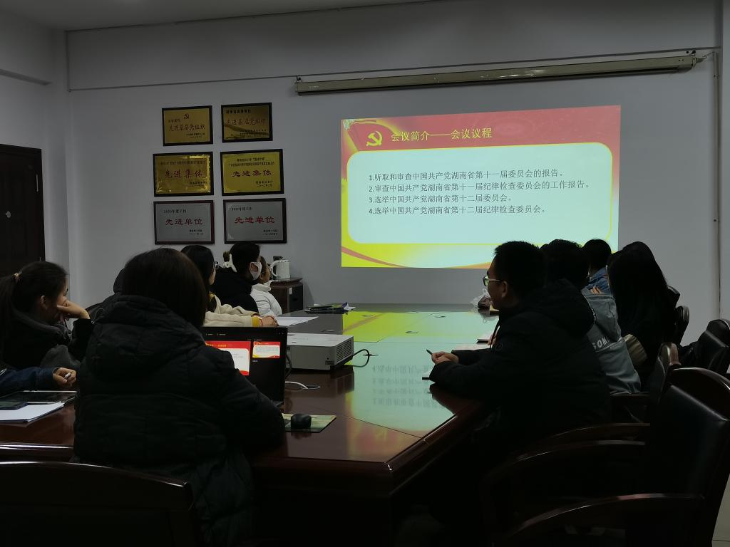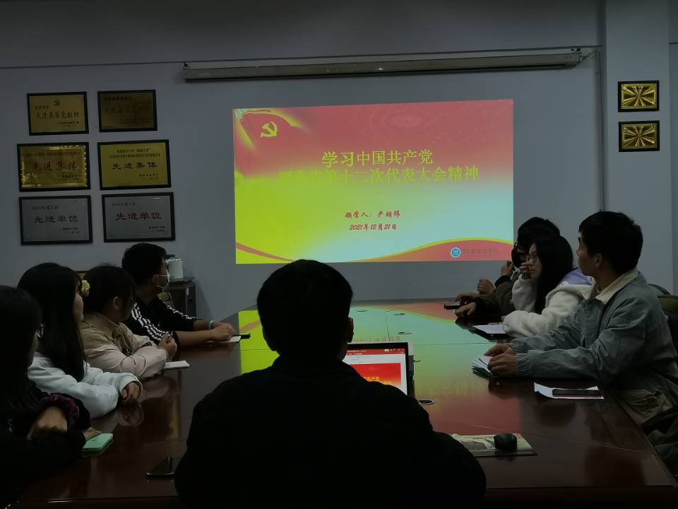 12月21日下午,物电学院学生第二党支部组织党员于6205会议室进行“中国共产党湖南省第十二次代表大会”精神主题党课学习。支部书记严胡伟授课,全体党员及预备党员参与学习。