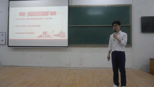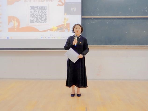 周畅从“意义”、“检验”、“学习”三个方面对答辩进行了总结。她强调,通过答辩,增强了大家对党组织的意识、仪式感以及严肃感,同时,答辩也进一步检验了大家对于党的理论学习的深度,一位合格的党员不仅要善于知错,更要懂得如何去改错、去学习,从而做到全心全意为人民服务。她鼓励学生党员始终铭记“全心全意为人民服务”的宗旨,为未来打好坚实基础的同时,把自身和学院建设好。