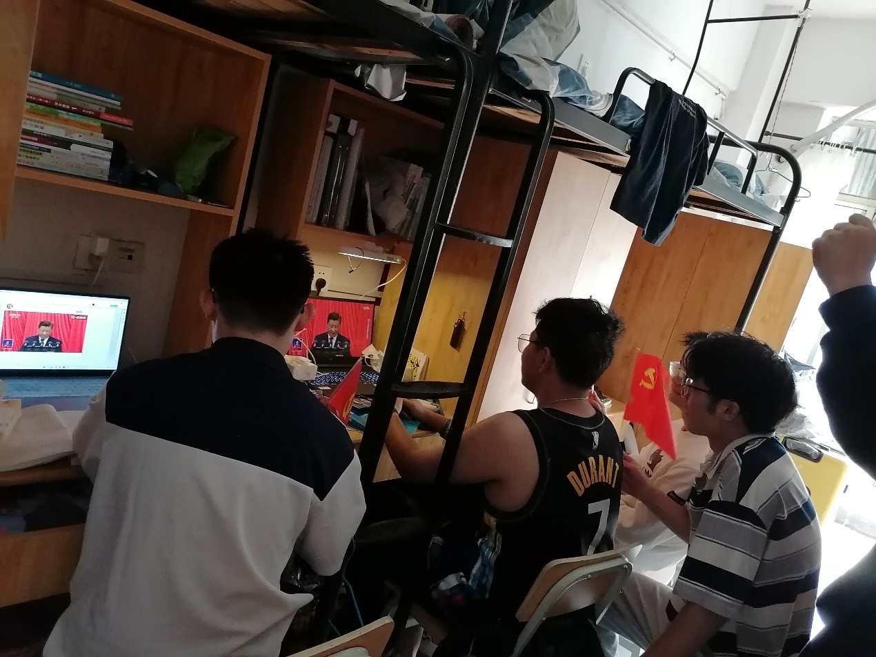 物电学子密切关注党的二十大召开,他们或在教室,或在宿舍集中收看,或组织腾讯会议线上收看开幕会。他们手持党旗,热烈祝贺党的二十大召开。同学们认真聆听习近平总书记的报告,深感作为新时代青年,生正逢时,使命重大,要努力学习,报效祖国!