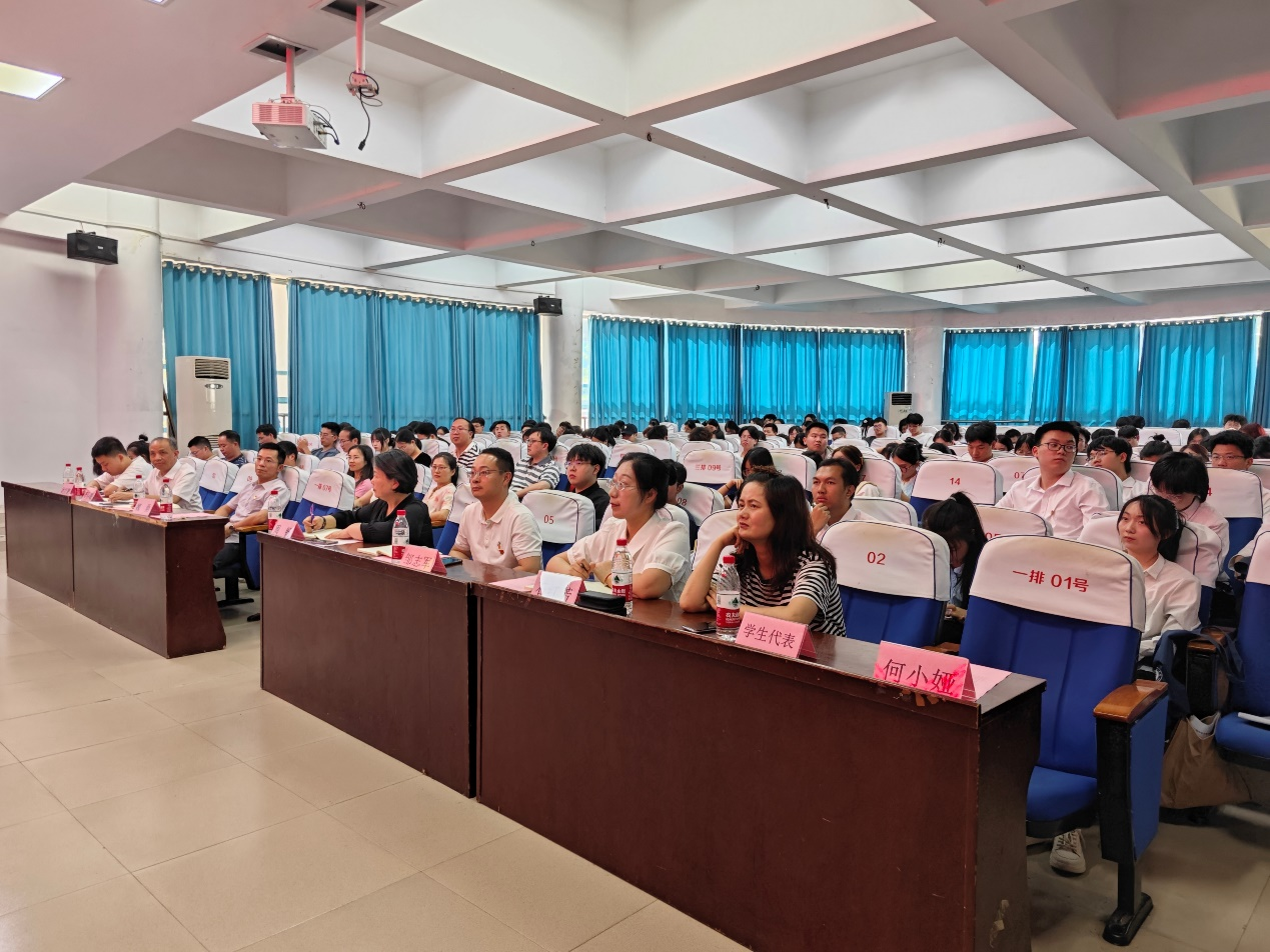 为深入学习贯彻习近平总书记关于党纪学习教育的重要讲话精神,扎实开展党纪学习教育,5月28日下午,物电学院党委邀请校党委委员、纪委书记谢贵辉为学院师生讲授“学习党规党纪,坚守纪律底线”的专题党课。学院党委委员、师生党员、入党积极分子100余人参加,院党委书记周畅主持。