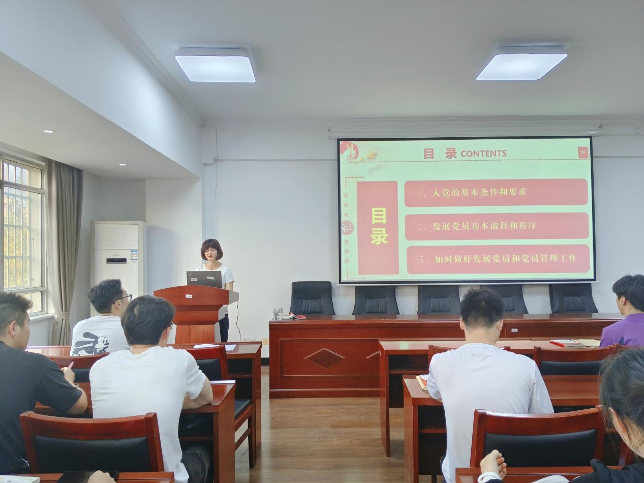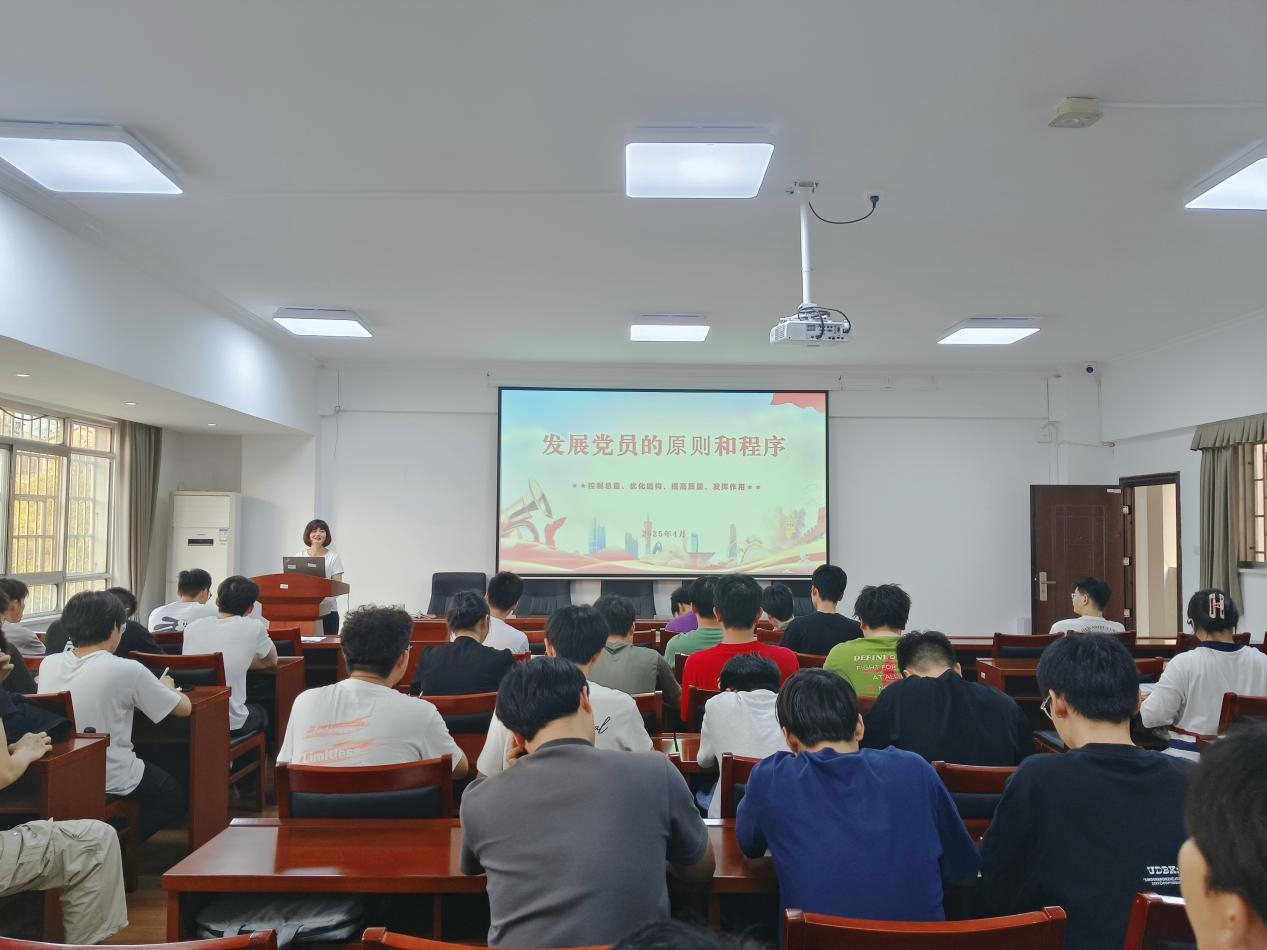 4月18日下午,物电学院组织员何小娅以“发展党员的原则与程序”为题讲授党课,第52期入党积极分子参加学习。