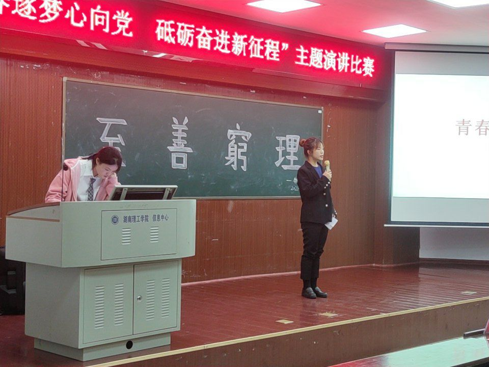 为献礼中国共产党成立100周年,展现物电学子向上向善的精神风貌,5月22日晚,物电学院于六栋学术报告厅举行了“青春逐梦心向党,砥砺奋进新征程”主题演讲比赛决赛。研究生辅导员许邕子老师、第十五届演讲比赛优秀选手彭惠和团学分会主席团部分成员及学习部部长担任此次比赛评委,19级、20级部分学生观赛,共计10名选手参赛。