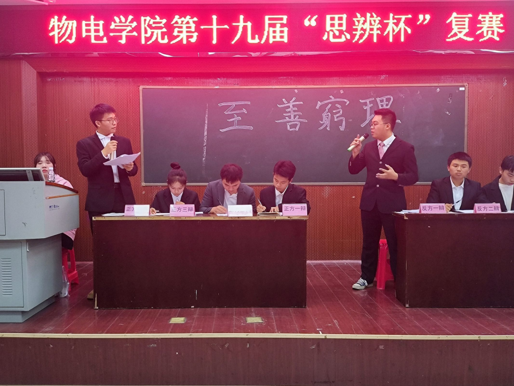 暗淡了刀光剑影,抡起了唇枪舌战。11月9日晚,物电学院第十九届“思辨杯”复赛于在学术报告厅顺利举行。此次比赛由物电团学分会学术科研部承办,特邀物电学院现辩论队教练阳佩,队长王嘉豪以及部分队员出任评委,初赛晋级四强队伍参赛。