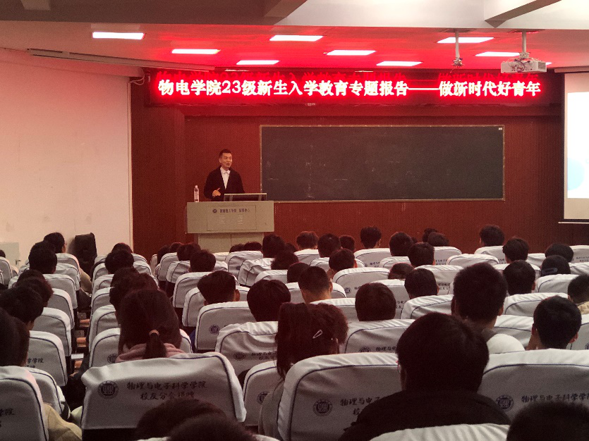 10月7日晚,物电学院在南院6号教学楼学术报告厅举行题为“做新时代好青年”报告会。学院邀请湖南大学干部培训中心吴振华老师主讲,辅导员熊彦淇及全体2023级新生参加,院党委副书记李科敏主持。