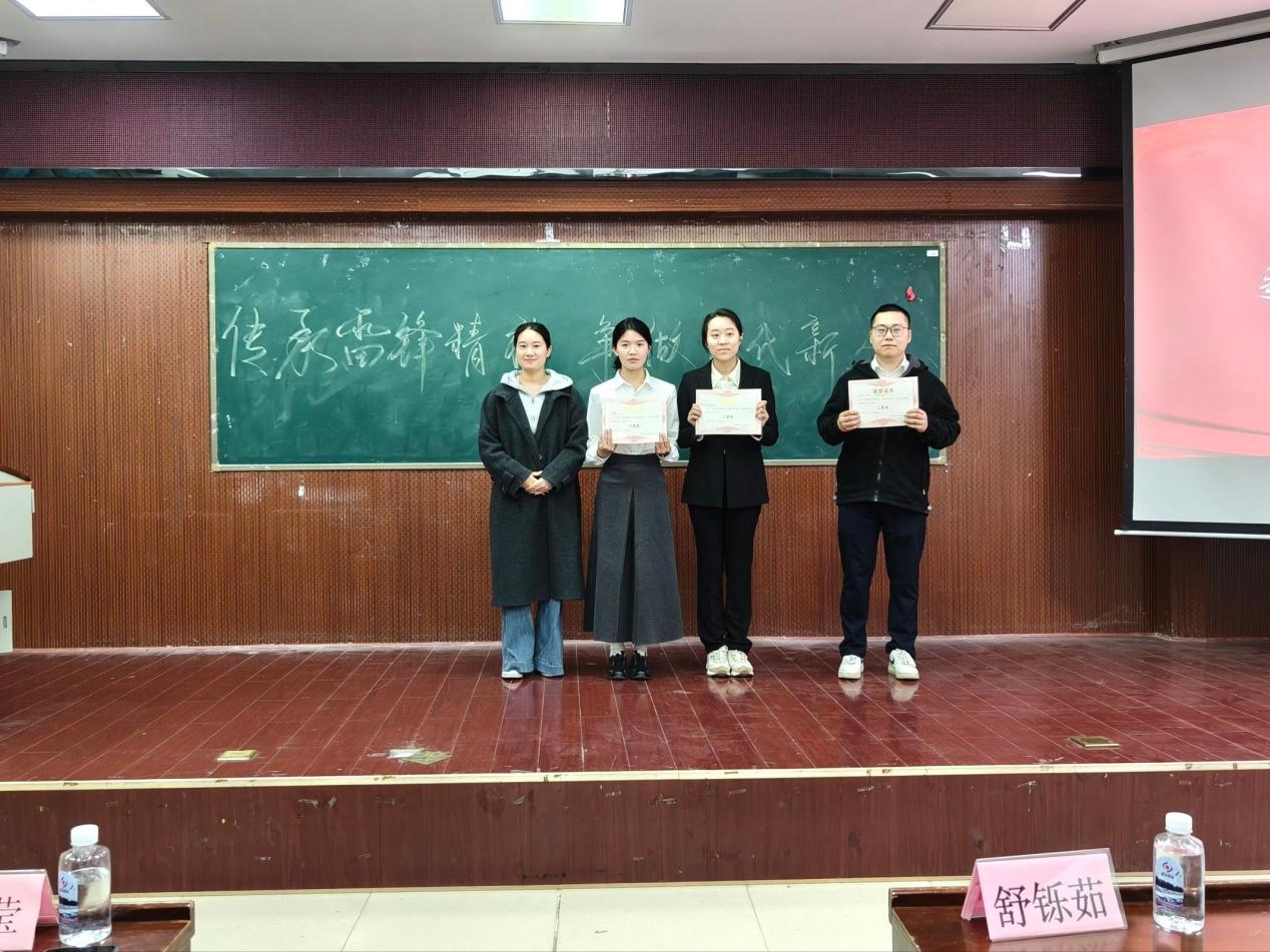 3月31日晚,物电学院于六栋学术报告厅开展“传承雷锋精神,争做时代新人”诵读比赛。研究生支部书记刘莹、研究生党员谢雨晴,本科生党员舒铄茹、欧阳兰受邀担任评委。本次比赛共设9组参赛队伍,由李汻平主持。
