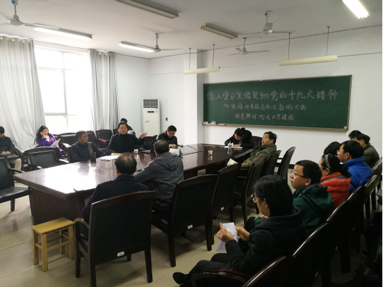 12月27日下午3点,校党委委员组织部部长刘创同志到物电学院宣讲十九大精神。物电学院全体教职工参加了会议,会议由总支书记罗文华主持。
