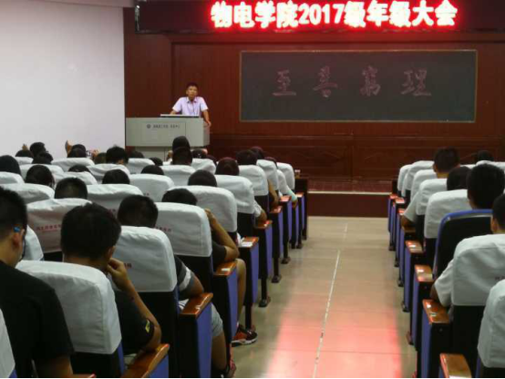 9月3日晚,物电学院于物电楼学术报告厅召开2017级年级大会。17级全体同学参加了本次会议,院党总支书记罗文华、17级辅导员何小娅以及17级各班班主任出席了本次大会。