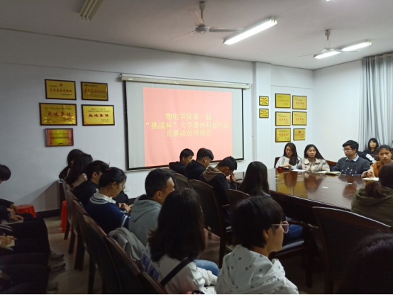 为了推动大学生创新创业素质教育,学院开展了“挑战杯”竞赛,对此,物电学院于3月28日下午在6208召开了第一届“挑战杯”大学生课外科技作品竞赛动员培训会。学科部全部成员、分管学科部主席团成员以及16级、17级和18级团支书参加会议,16级辅导员李子婧、学院党总支副书记张陈武出席会议,本次会议由何小娅老师主持,16级廖金艳同学担任主讲嘉宾。