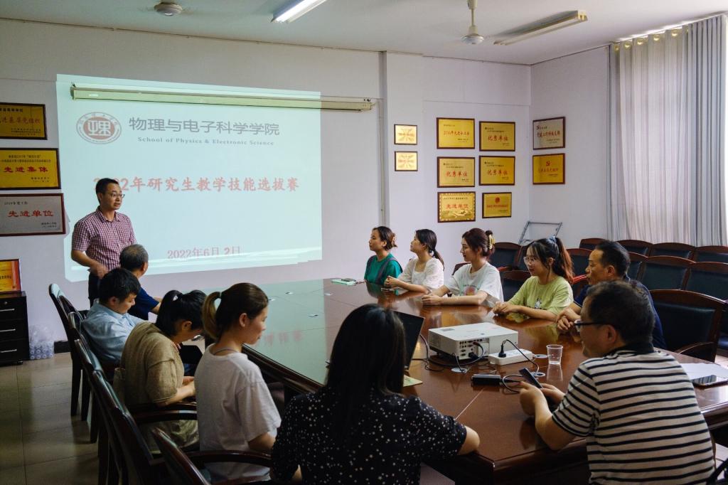 2022年6月2日,物电学院在物电楼6205会议室举行了湖南省首届研究生教学技能大赛选拔赛