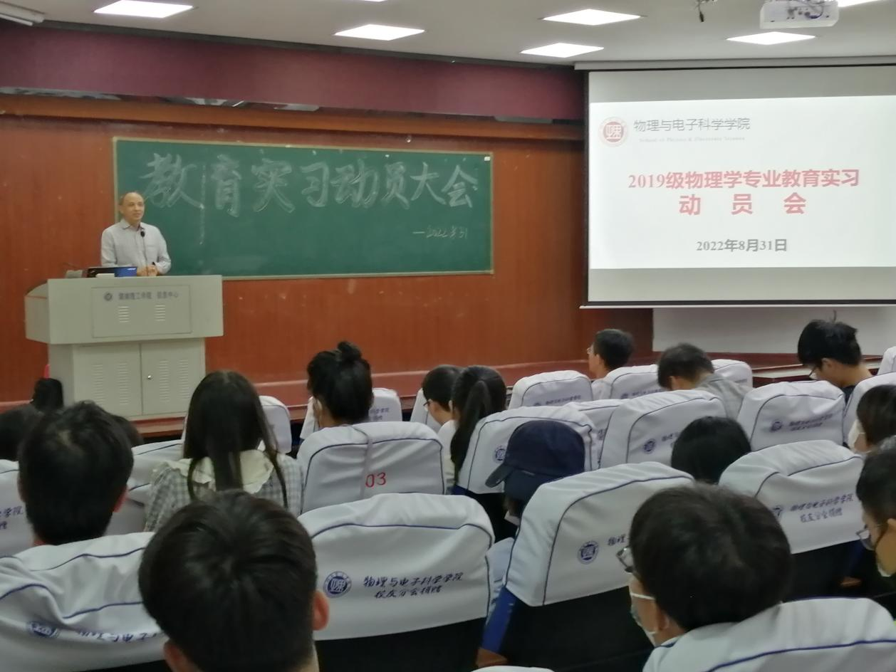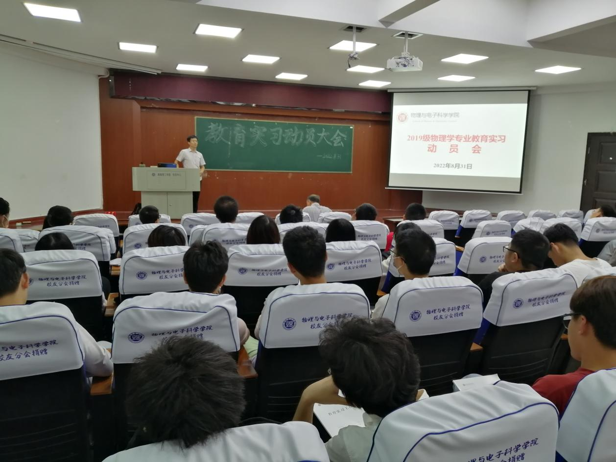 8月31日上午,物电学院在物电楼学术报告厅举行2022年物理学师范生教育实习动员大会,副院长魏勇、副书记李科敏,实习带队教师陈灏、李照宇、张娜和李奇云等出席,全体2019级物理学(教师教育)专业学生参加。