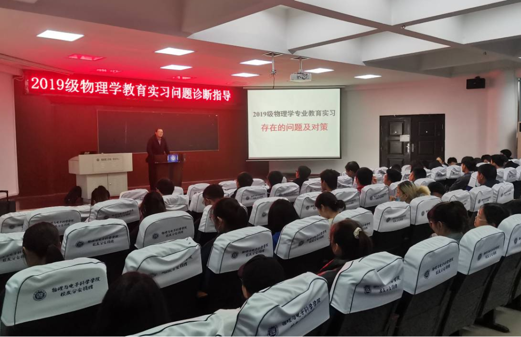 2022年10月10日上午,物理与电子科学学院基于“新冠疫情”对当前教育实习的影响,在物电楼学术报告厅开展了“2019级物理学教育实习问题诊断与指导”报告,各实习队指导教师、实习生参加。院党委副书记李科敏教授主持。