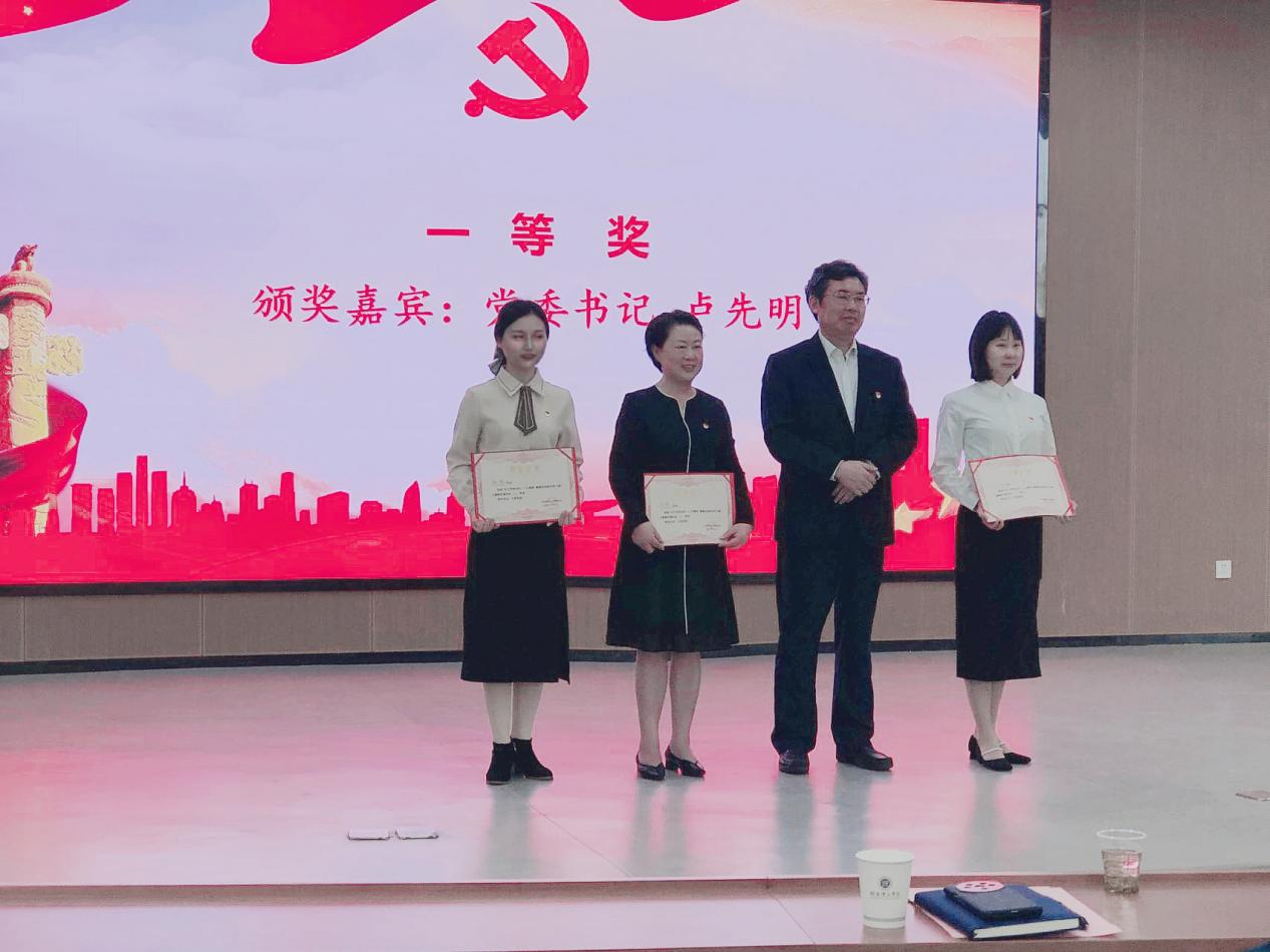 我院党委书记周畅以“《共产党宣言》:一本书改变一个民族”为题,讲述了《共产党宣言》和马克思主义作为中国共产党的建党思想和理论指导,在百年党史取得历史性成就的作用和意义。并将物电学院党委如何推动《共产党宣言》和马克思主义理论原著在物电学子中学习与传播进行了介绍。最终,周畅的党课以94.48分的成绩获得一等奖第一名。