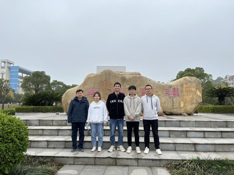 获奖学生曾佳佩、高尔卓、许石祖和钱坤、罗良老师合影