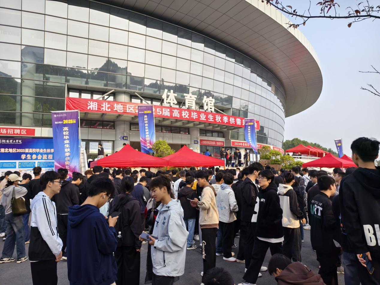 2024年11月2日上午,物电学院组织学生参加湘北地区2025届高校毕业生秋季供需见面会,学院党政负责人周畅、魏勇、石红芳,辅导员何小娅以及班主任孙小香、禹卓良到场指导学生求职。