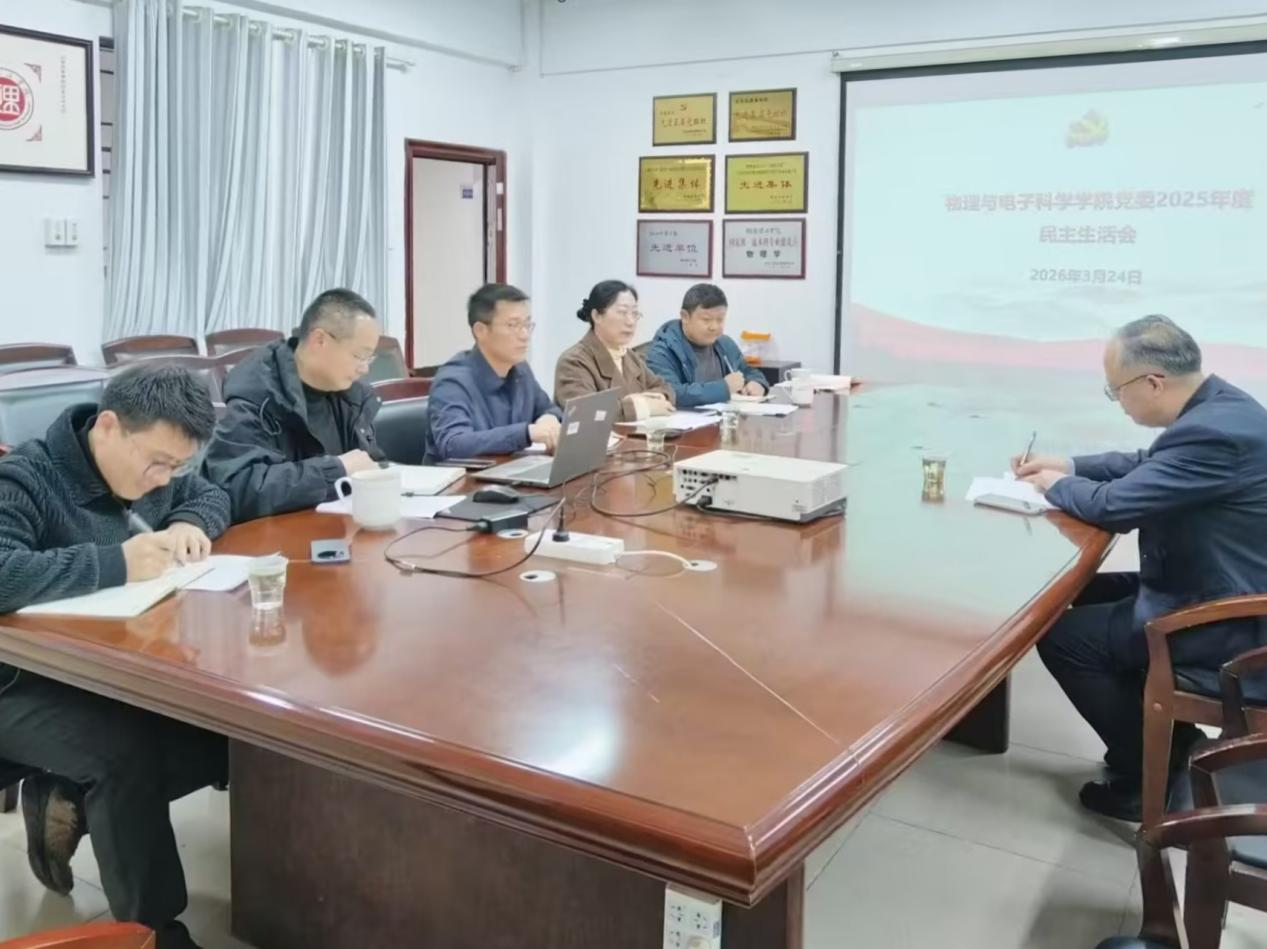 3月24日上午,物电学院党委班子在6205会议室召开2025年度民主生活会。校党委委员、副校长刘长辉到会指导,会议由学院党委副书记、院长魏勇主持,全体党委委员参加会议。