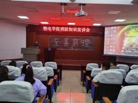 最后,物电学院分党委副书记张陈武对本次宣讲会进行了总结发言。张书记结合近年来校园火灾案例进行了分析,并强调:消防安全不是儿戏,希望大家引以为戒,不断增强自身消防安全意识,提高警惕,严格遵守学校、学院各项规章制度,为保障自身及室友、同学的生命财产安全付诸实践。