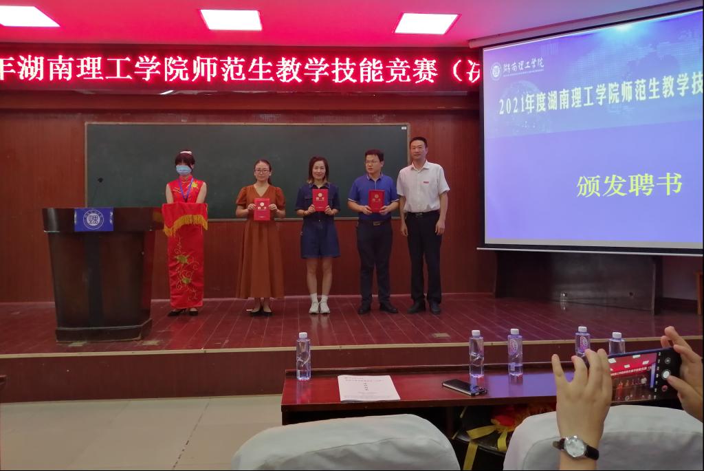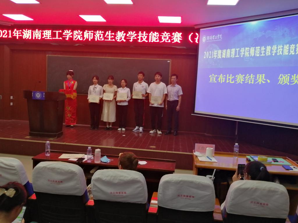 该项活动旨在进一步推动我校人才培养模式和实践教学的改革,加强我校教师教育专业学生职业技能的培养,提高师范生的教育教学能力,尽快适应基础教育改革发展对师资培养的需求。竞赛包含片段教学、教学板书、教育问答等环节,其中片段教学成绩占总成绩的70%,教学板书和教育问答各占总成绩的15%,综合考核参赛选手的教育教学实践与研究能力。经过近4个小时紧张而激烈的角逐,中文学院龚晓思、物电学院方君、外语学院徐雪荣获一等奖,并获得第七届湖南省普通高等学校师范生教学技能竞赛的参赛资格;化工学院周岚、政法学院彭婉瑜、美设学院呙迪、体育学院文永桂和数学学院侯露伟荣获二等奖,并获得第七届湖南省普通高等学校师范生教学技能竞赛的预参赛资格。