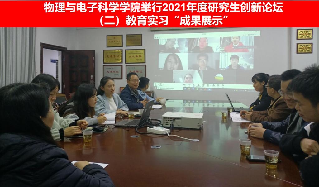 11月10日晚上7:00,我院 2020级学科教学物理专业全体研究生在6205会议室进行了“教育实习”成果展示,学院副院长邹志军主持,研究生导师刘喜斌、李奇云出席。