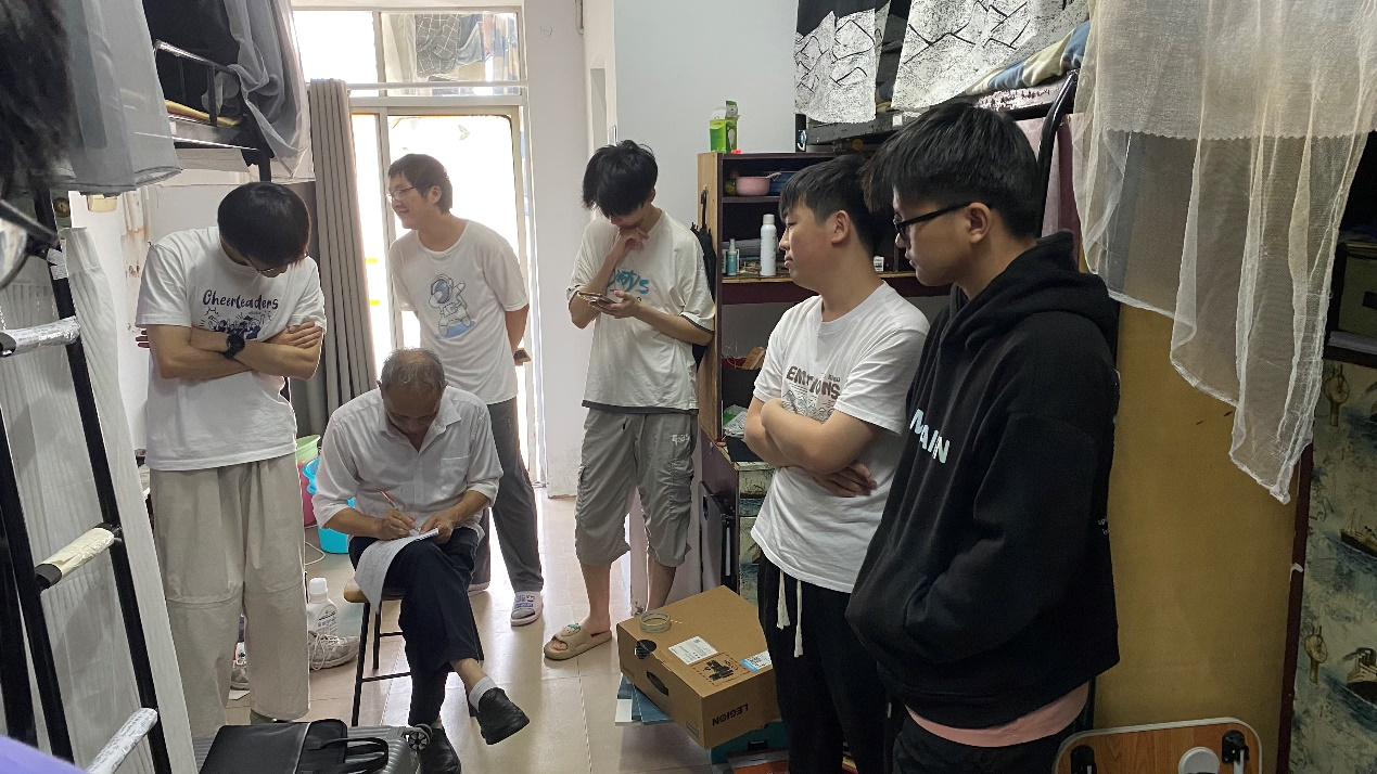 在毕业生宿舍,老师们了解了2024届毕业生领取毕业证书的情况、工作落实去向等,提醒毕业生文明、安全、有序离校。